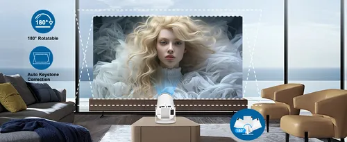 【Multi-Scenario Flexible Projection】The smart movie projector supports 180° free rotation, allowing for easy projection on walls, ceilings, or floors without complicated setup. It is suitable for various scenarios, including home theaters, leisure entertainment, children's education, video conferences, or online teaching, meeting diverse usage needs.