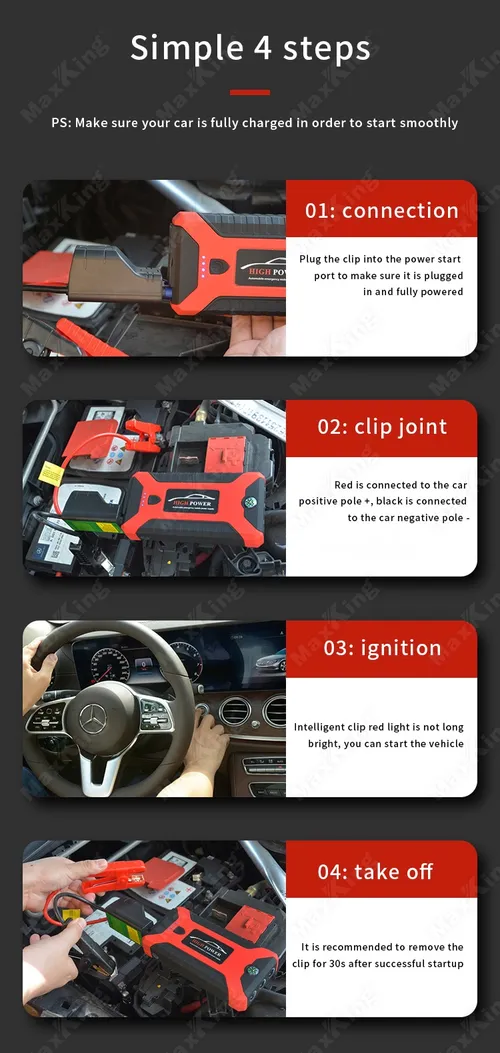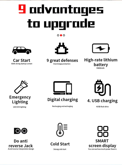 Functions | LED light, starting power supply, charging, compass, flashing emergency light |