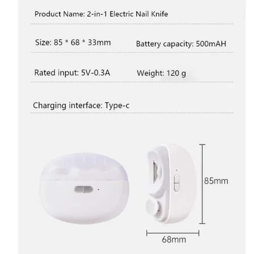 Product Name | 2-in-1 Electric Automatic Rechargeable Nail Clippers (with Light) |