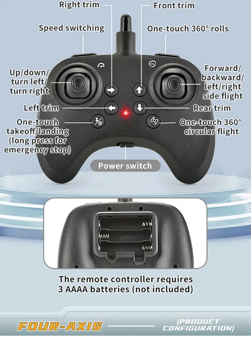 Remote Control Batteries | 3 AA batteries (not included) |