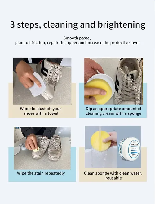"White Shoe Cleaning Cream" is a powerful stain remover that will leave you with new, clean surfaces - just like the day you bought them!
